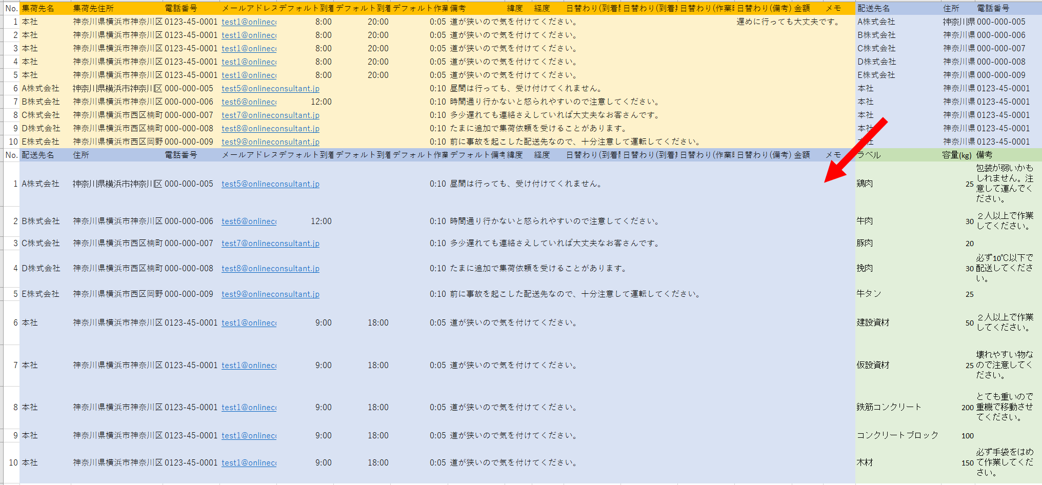 ※横幅の関係で、ファイル右にある配送先のリストを下に持ってきています。