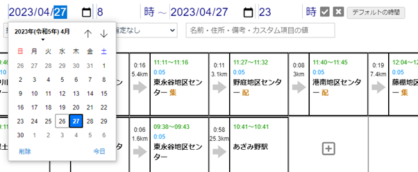 - 出発地、帰庫地を除いた行き先が1か所のみ、もしくは集荷先と配送先のペアが一つのみのルートで、その行き先を削除すると出発地、帰庫地も削除されます。