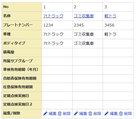 ④ボディータイプ情報(ライセンスを紐づけています)。