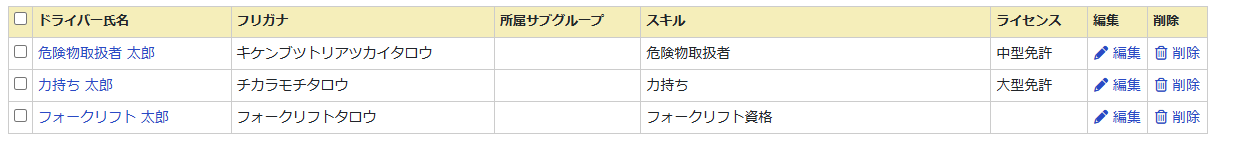ドライバーの資格、技術、対応力などを「スキル」として設定できます。