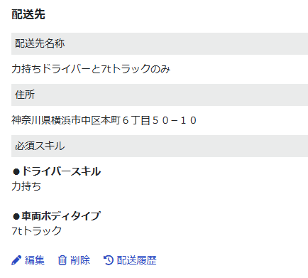 ・配送先に必須スキルを登録した状態で、配送計画を作成してください。