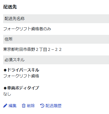 配送先に訪問するための紐づけや「搭乗機能」の際ドライバーとの紐づけにも使用します。 搭乗機能については下記リンクをご参照ください。
